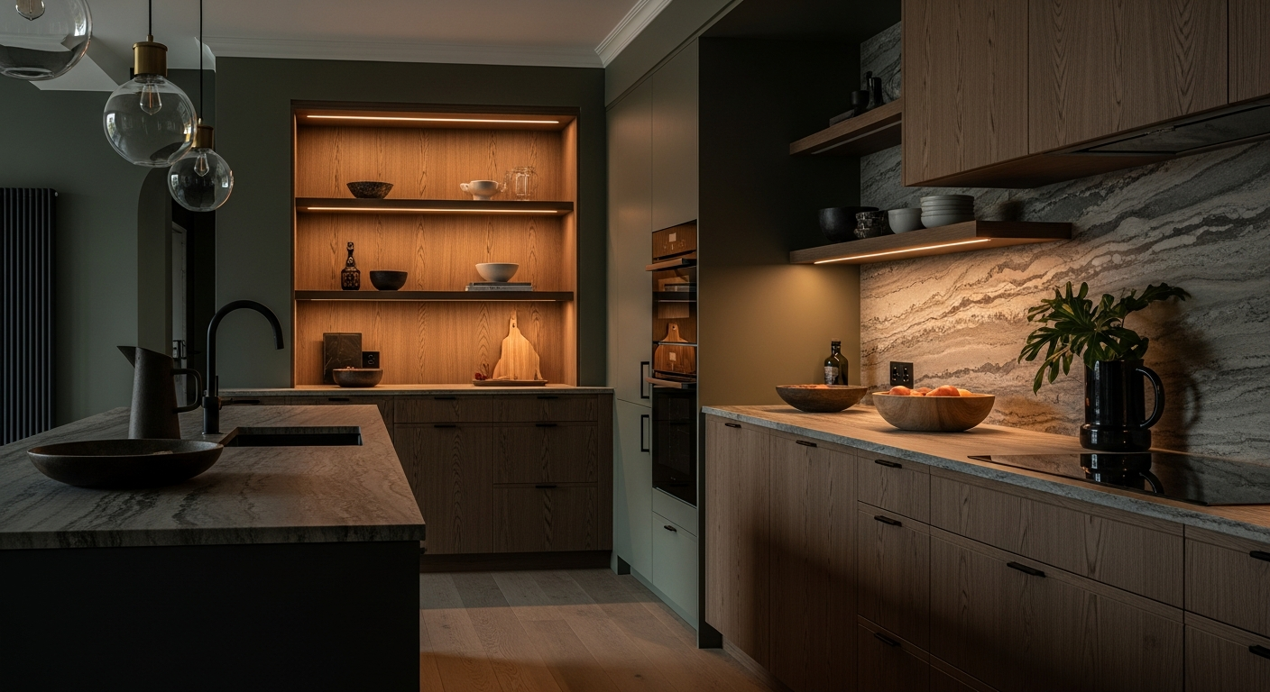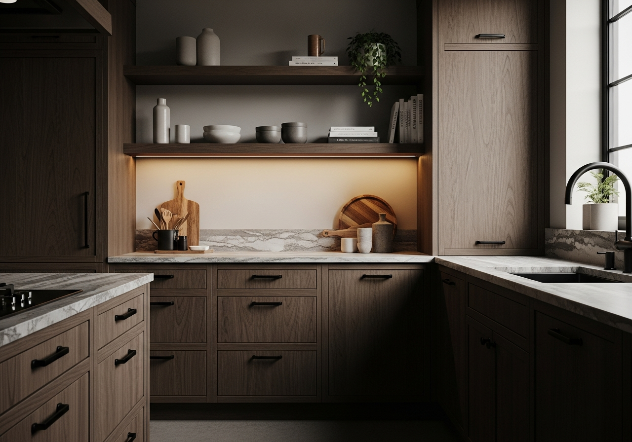 Full kitchen makeovers including cabinets, flooring, backsplash, lighting, and layout optimization for a functional, modern space.